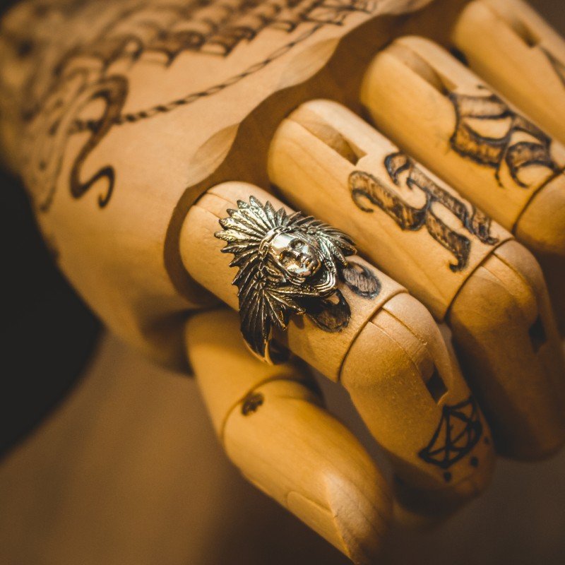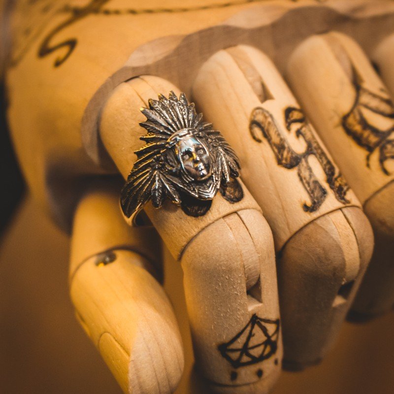 O anel índia Americana pertence a coleção faroeste e traz uma modelagem única e exclusiva. Os índios americanos viveram no século 19, nas planícies da América do norte, e com a chegada do homem branco começaram a adquirir armas de fogo e tecidos, o que levou a um declínio das tradições e cultura. Os grupos indígenas se uniam contra os forasteiros brancos e guerreavam entre si. Feito em prata 925.